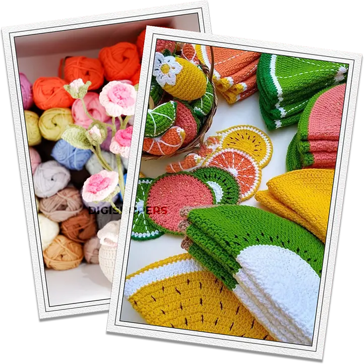 - Crochet-themed decorations for holidays like Diwali, Christmas, and Halloween